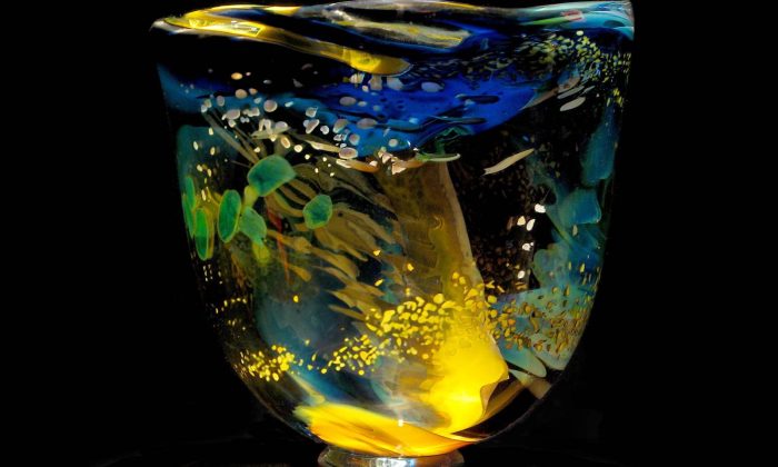 Johan de Vries (Sneek, 1955) toont glasobjecten die ontstaan uit lagen transparante kleur, waarin natuurwezens en landschappen lijken op te lichten. Zijn werk is geen zoektocht naar vorm, maar naar kleur, beweging en innerlijke reis. Zoals hij zelf zegt: “Vloeibaar heet glas is water in vuur; is magie.”